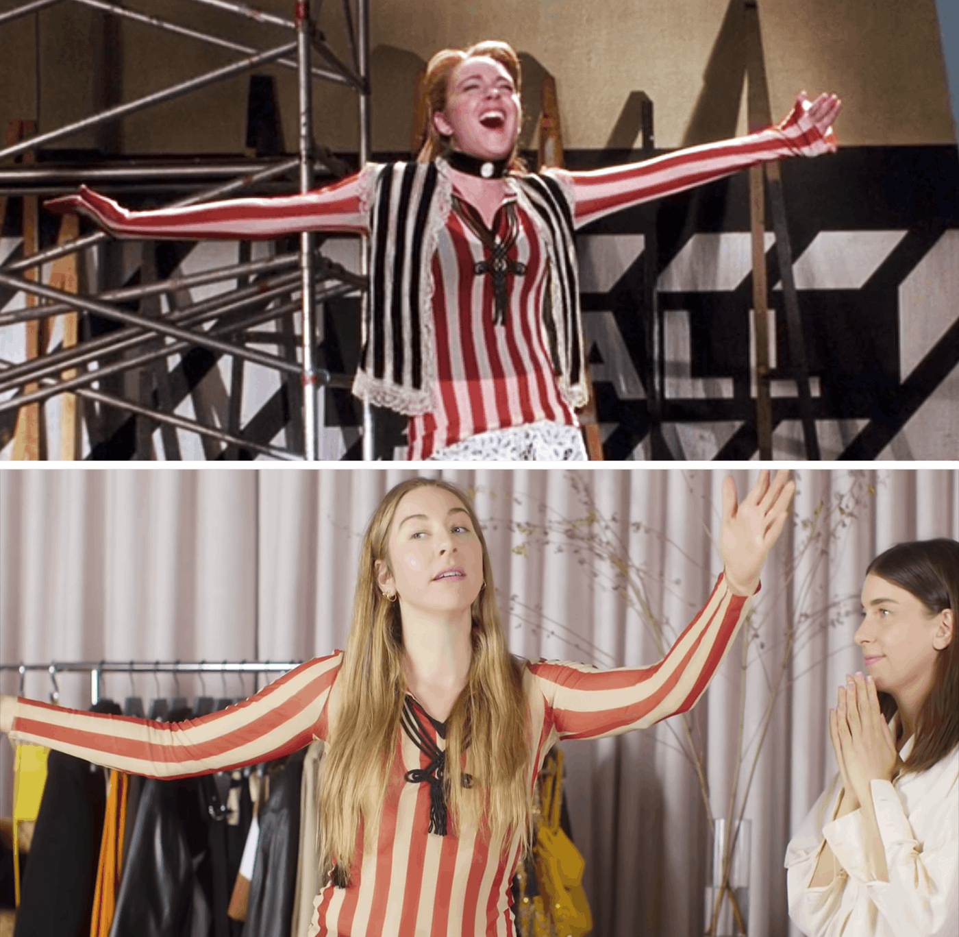In a recent YouTube video for Vogue, the sister trio behind the Grammy-nominated band Haim showcased every outfit they would wear in a week. For one of the days, bassist Este Haim wore a vintage Jean Paul Gaultier top that I found eerily familiar: It’s the top that Lindsay Lohan wore in Confessions of a Teenage Drama Queen, when her character auditions for a role in the school play by singing a song by her favorite (albeit fictional) band, Sidarthur.